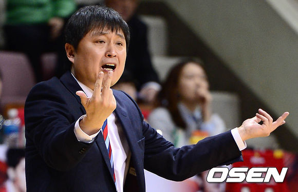 3쿼터 KGC 이상범 감독이 선수들에게 작전을 지시하고 있다.