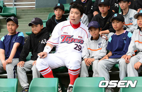 마지막으로 선 감독은 학생 20명과 관계자들까지 일일이 직접 사인을 해주며 기념 촬영까지 했다. 나지완을 비롯해 KIA 선수들도 학생들에게 다가가 사인 및 사진 촬영으로 화끈하게 팬서비스했다. 선 감독은 "어린 아이들이 우리 야구의 꿈나무 아닌가. 아이들에게 잘 해줘야 앞으로 야구에 대한 관심이 계속 이뤄질 것"이라고 말했다. 선 감독은 버스를 타고 돌아가는 학생들에게 마지막까지 손짓으로 인사하며 미소를 지어보였다.