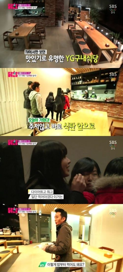 SBS 예능 프로그램 '일요일이 좋다 - 서바이벌 오디션 K팝스타 시즌3'(이하 K팝스타3) 안테나뮤직 참가자들이 첫 YG 사옥 구경을 식당밥 흡입으로 시작했다.