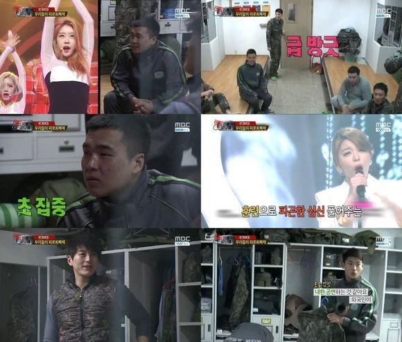 한미합동훈련을 마치고 돌아온 '진짜사나이' 멤버들과 번개부대 병사들이 TV 속 걸그룹과 여가수의 섹시한 모습에 넋을 놓았다.