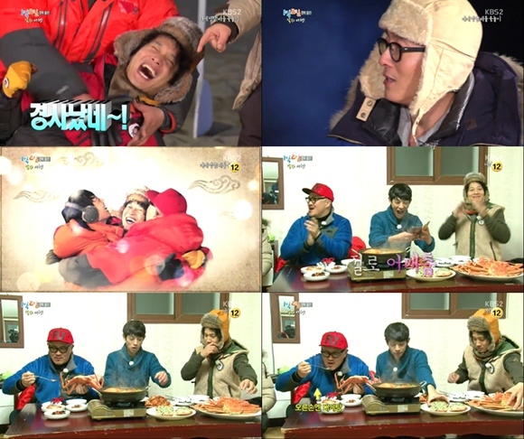 2일 오후 방송된 KBS 2TV 예능프로그램 '해피선데이-1박2일'(이하 1박2일)에서는 경북 울진으로 여행을 떠나 대게를 걸고 배틀 윷놀이를 진행하는 멤버들의 모습이 그려졌다.