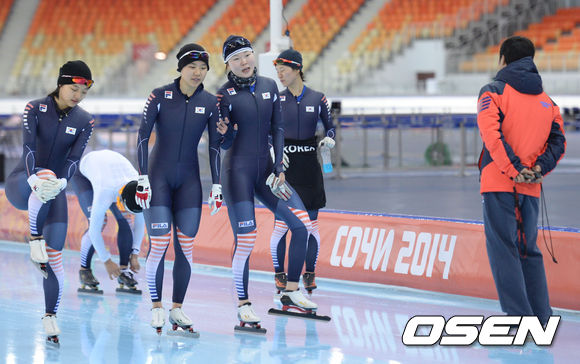 러시아 2014소치 동계올림픽 개막을 앞둔 3일(한국시간) 오전 러시아 소치 해안클러스터 내 아들레르 아레나에서 스피드스케이팅 대표팀이 첫 훈련을 하고 있다.