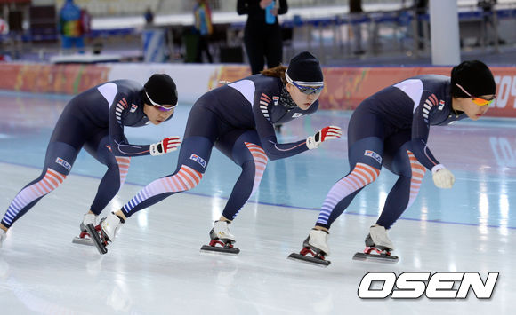 소치서 훈련하는 女 팀추월