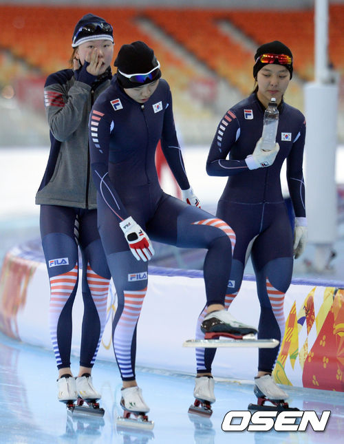 러시아 2014소치 동계올림픽 개막을 앞둔 3일(한국시간) 오전 러시아 소치 해안클러스터 내 아들레르 아레나에서 스피드스케이팅 대표팀이 첫 훈련을 하고 있다.
