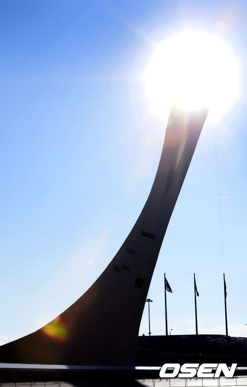 러시아 2014소치 동계올림픽 개막을 앞둔 2일(한국시간) 오후 러시아 소치 해안클러스터 내 올림픽파크 성화탑에 걸린 태양.