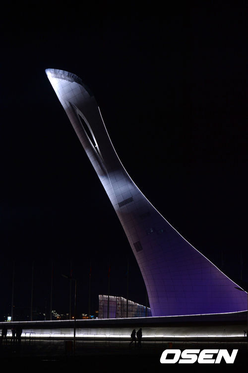 러시아 2014소치 동계올림픽 개막을 앞둔 3일(한국시간) 오전 러시아 소치 해안클러스터 내 성화탑 야경.