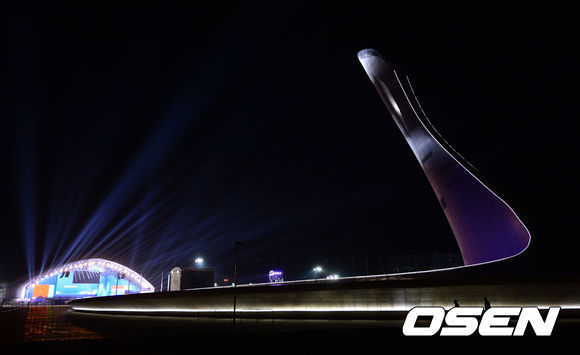 러시아 2014소치 동계올림픽 개막을 앞둔 3일(한국시간) 오전 러시아 소치 해안클러스터 내 성화탑 야경.