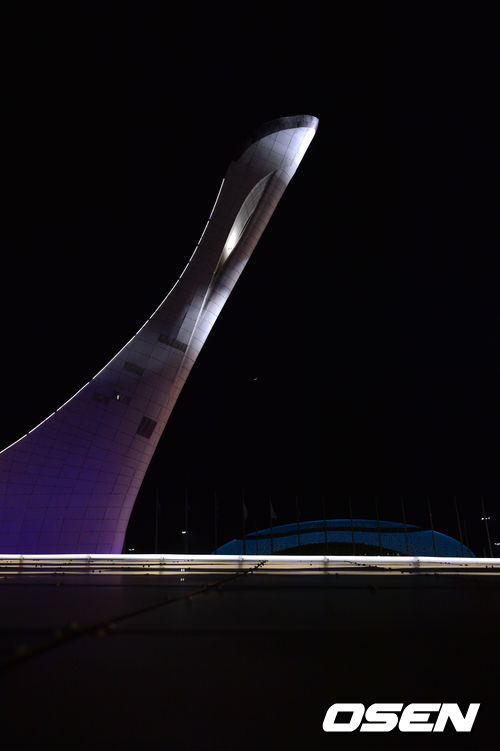 러시아 2014소치 동계올림픽 개막을 앞둔 3일(한국시간) 오전 러시아 소치 해안클러스터 내 성화탑 야경.