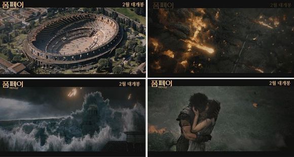 로마 제국에서 가장 화려했던 도시 폼페이의 전경에서 시작하는 '폼페이: 최후의 날'의 30초 예고편은 화산 폭발로 인해 순식간에 무너져 내리는 도시의 모습을 보여주며 영화의 압도적 스케일에 대한 기대감을 고취시킨다. 이어 “영원히 사라진 도시, 전설이 된 사랑이 깨어난다”라는 카피와 함께 피할 수 없는 대재난 속에서도 아름답게 펼쳐지는 두 남녀의 애절한 모습은 '타이타닉'에 버금가는 위대한 감동 스토리를 예고케 한다.