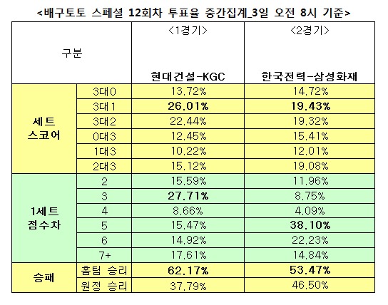 2013-2014시즌 프로배구 대상 배구토토 스페셜 12회차 중간집계 결과