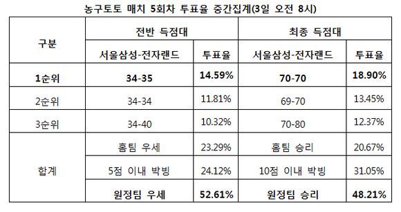 2013-14시즌 KBL 서울삼성-전자랜드전 대상 농구토토 매치 5회차 투표율 중간집계 결과