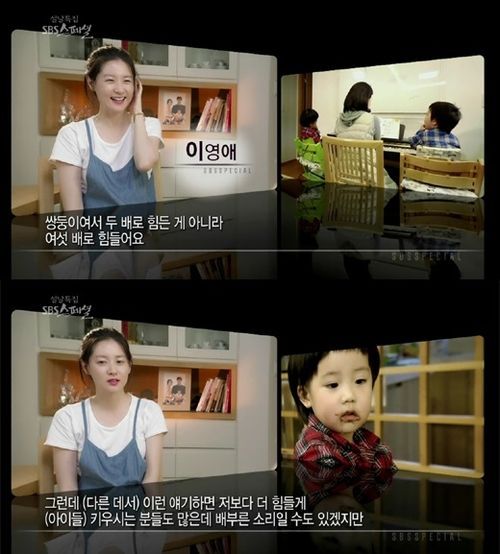 이날 이영애는 "쌍둥이여서 두 배로 힘든 것이 아니라 여섯 배로 힘들다"며 육아 고충을 털어놨다.
