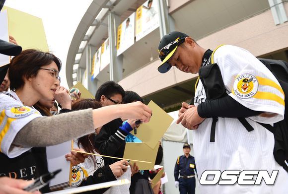 이대호는 지난 1일 팀 스프링캠프 훈련이 시작된 미야자키현 이키메노모리 운동공원 아이비 스타디움에 모습을 드러냈다. 지난해 12월 소프트뱅크와 2+1년 최대 14억5000만엔에 계약을 체결한 이대호는 오릭스에서 소프트뱅크로 팀을 옮기며 일본 무대 3년차를 시작했다.