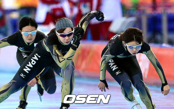 러시아 2014소치 동계올림픽 개막을 앞둔 3일(한국시간) 러시아 소치 해안클러스터 내 아들레르 아레나 경기장에서 일본여자 스피드스케이팅 선수들이 훈련을 하고 있다.