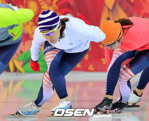 러시아 2014소치 동계올림픽 개막을 앞둔 3일(한국시간) 러시아 소치 해안클러스터 내 아들레르 아레나 경기장에서 스피드스케이팅 이상화가 훈련에 임하고 있다.