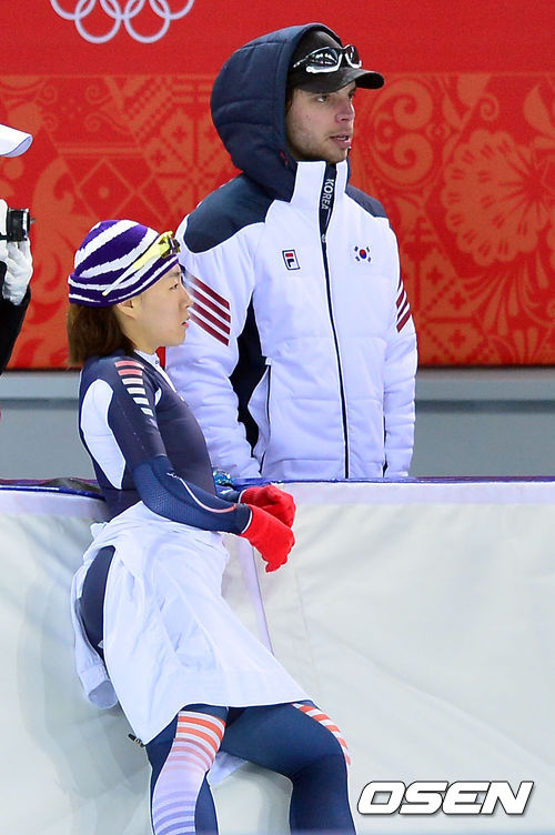 러시아 2014소치 동계올림픽 개막을 앞둔 3일(한국시간) 러시아 소치 해안클러스터 내 아들레르 아레나 경기장에서 이상화가 훈련을 마치고 펜스에 기대어 쉬고 있다.