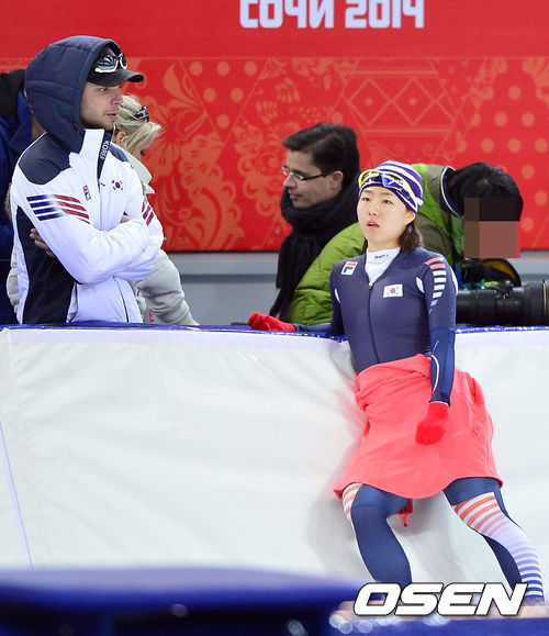 러시아 2014소치 동계올림픽 개막을 앞둔 3일(한국시간) 러시아 소치 해안클러스터 내 아들레르 아레나 경기장에서 이상화가 펜스에 기대어 휴식을 취하고 있다.