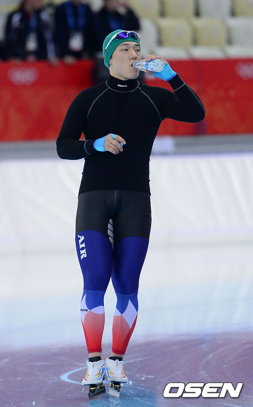 러시아 2014소치 동계올림픽 개막을 앞둔 3일(한국시간) 러시아 소치 해안클러스터 내 아들레르 아레나 경기장에서 모태범이 훈련 후 물을 마시고 있다.