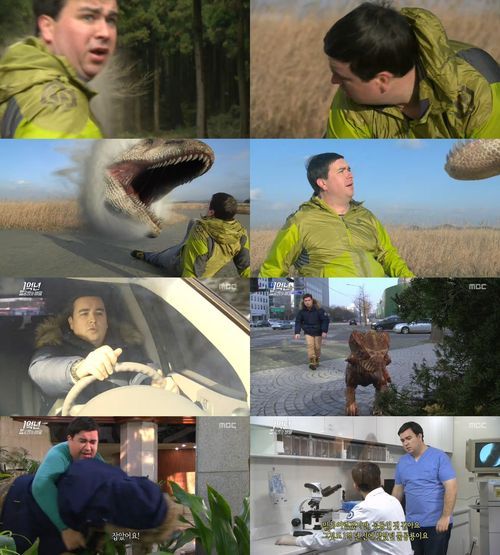 이어 그는 운전을 하던 중 자신과 함께 왔던 코리아케라톱스를 발견하게 됐고, 의사에게 검진을 맡기고 보살펴 주는 등의 모습을 실감나게 연기했다. 특히 CG로 완성된 코리아케라톱스의 모습은 공룡을 소재로 한 영화를 보는 듯 생생해 눈길을 끌었다.