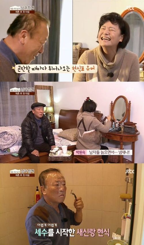 결국엔 임현식도 박원숙의 성화에 못 이겨 가까스로 세수와 면도를 시작했다.
