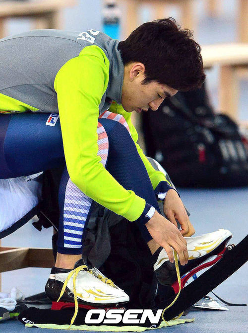 러시아 2014소치 동계올림픽 개막을 앞둔 3일(한국시간) 러시아 소치 해안클러스터 내 아들레르 아레나 경기장에서 남자대표 스피드스케이팅 이승훈 선수가 훈련에 앞서 준비를 하고 있다.