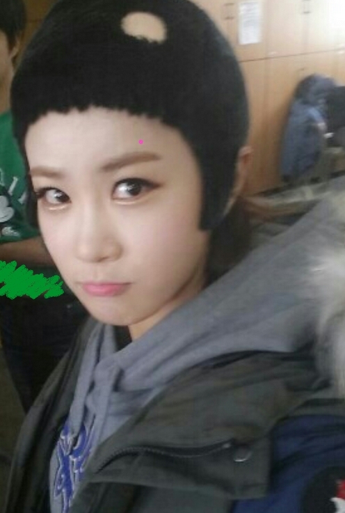 공개된 사진 속 김지민은 짧은 머리 가발을 쓴 채 카메라를 응시하고 있다. 영구처럼 머리 한 쪽이 비어 있어 코믹한 모습인데, 김지민의 동그란 눈과 표정은 귀엽다.