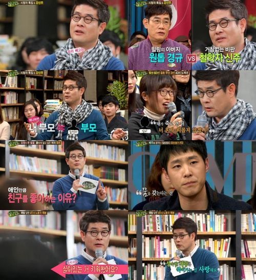 이에 강신주는 "영원한 걸 사랑하는 건 어린이들뿐이다. 성숙한 사람은 죽어가는 것을 사랑한다. 그래서 소중히 여기는 거다"라며 "저는 자라는 아이들에게 반려 동물을 키우라고 조언하는데 소멸의 경험을 통해 소중함을 배우기 위함이다. 내가 나를 소중히 여기는 이유 역시 언젠가 죽기 때문"이라는 답을 내놨다.