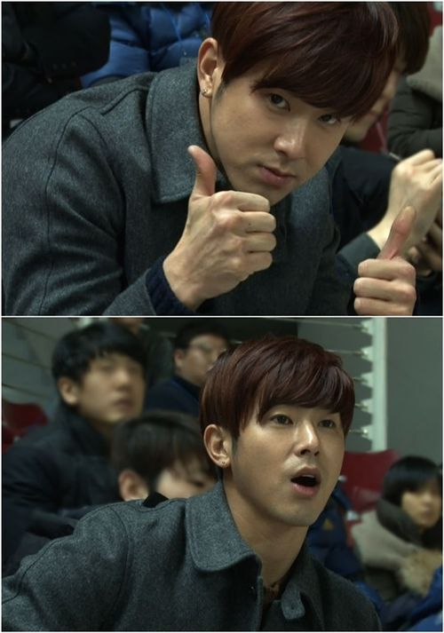 그룹 동방신기 유노윤호가 KBS 2TV 예능프로그램 '우리동네 예체능' 경기 관중석에서 포착돼 눈길을 끈다.