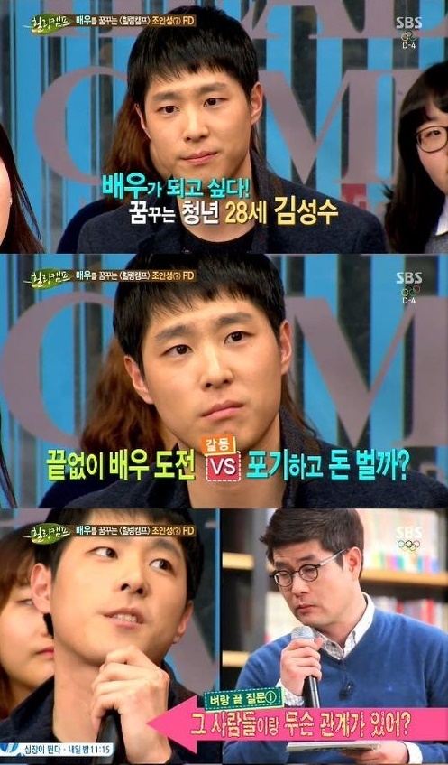 이날 방송에는 '힐링캠프' FD로 일했던 배우 지망생 김성수 씨가 출연했다. 배우가 되기 위해 고향을 떠나 서울로 상경한 그는 녹록치 않은 현실 앞에 많이 지쳐 있었다.