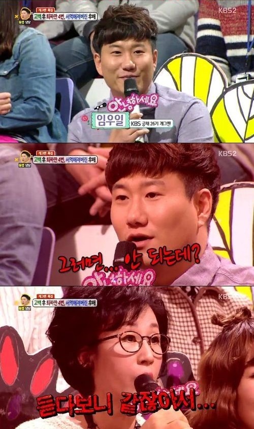 이날 김영희의 어머니는 임우일에 옆자리에 착석, 어두운 표정으로 방송에 임했다. 어머니는 "딸이 열흘 정도 집에만 들어오면 제 방에 들어가서 안 나왔다. 소문 들으니 임우일을 좋아하고 있다고 하더라"라며 말문을 열었다.