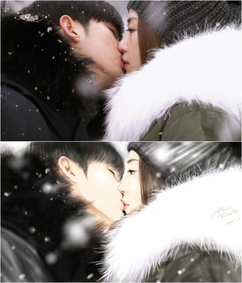 ID ‘1000goa’인 드라마 팬은 인터넷 커뮤니티에 ‘천도커플의 눈키스’라는 제목으로, 지난 11회 에필로그 중 눈 내릴 당시 민준이 시간을 정지시킨 뒤 송이에게 키스했던 이른바 ‘시간정지키스’ 장면을 그대로 그림으로 옮겨놨다.