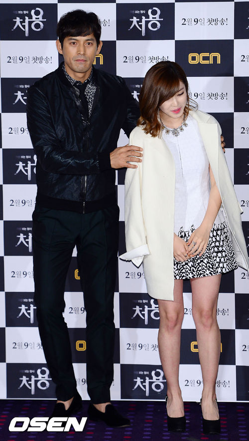 4일 오후 서울 영등포구 영중로 타임스퀘어 영등포 CGV 4관에서 열린 OCN 드라마 '귀신보는 형사-처용' VIP 시사회 및 무대인사 행사에서 오지호가 전효성을 에스코트해주고 있다.
