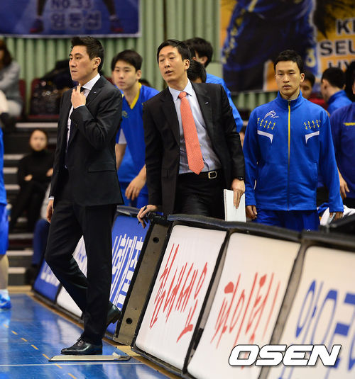 1쿼터 삼성 이상민 코치가 작전타임에 코트에 들어서고 있다.