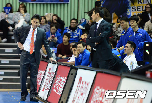 2쿼터 삼성 김상식 감독대행이 아쉬운 표정으로 경기를 지켜보고 있다.