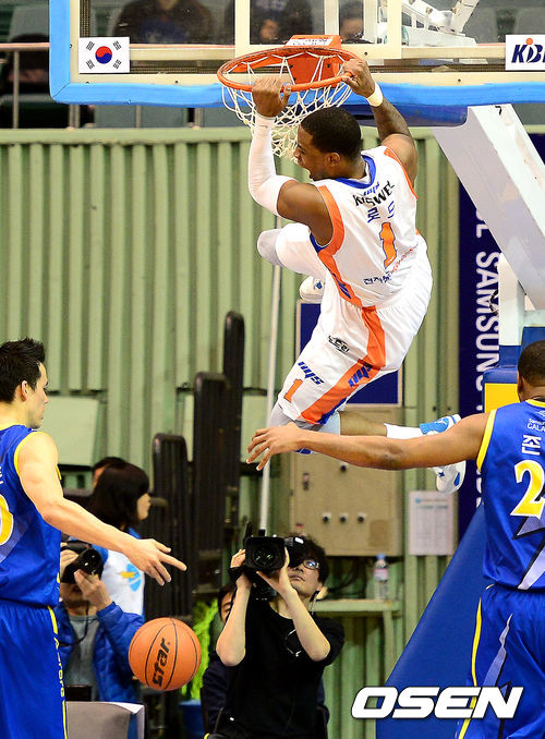 2쿼터 전자랜드 로드가 투핸드 덩크를 성공시키고 있다.