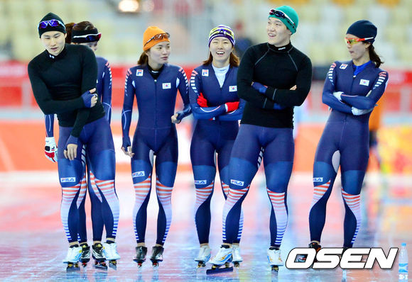 2014소치 동계올림픽 개막을 앞둔 4일(한국시간) 러시아 소치 아들레르 아레나 경기장에서 대한민국 스피드스케이팅 선수들이 훈련을 하고 있다.