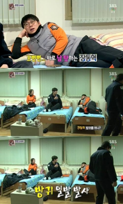 장동혁은 4일 방송된 SBS 예능 프로그램 '심장이 뛴다'에서 이원종, 박기웅, 전혜빈, 최우식과 야식으로 족발을 먹었다. 그는 먹자마자 바로 침대에 누워 방귀를 뀌는 등 자연스러운(?) 모습을 보여 웃음을 자아냈다.