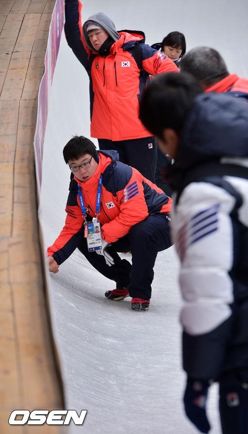 2014소치 동계올림픽 개막을 앞둔 4일(한국시간) 러시아 소치 산키 슬라이딩센터에서 김동현 원윤종 김선옥 봅슬레이 파일럿들과 이용 감독이 트랙워킹을 하고 있다.