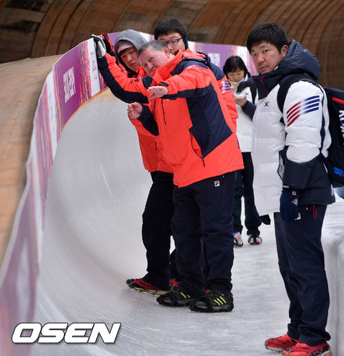 2014소치 동계올림픽 개막을 앞둔 4일(한국시간) 러시아 소치 산키 슬라이딩센터에서 김동현 원윤종 김선옥 봅슬레이 파일럿들과 이용 감독이 트랙워킹을 하고 있다.