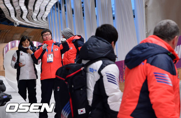 2014소치 동계올림픽 개막을 앞둔 4일(한국시간) 러시아 소치 산키 슬라이딩센터에서 김동현 원윤종 김선옥 봅슬레이 파일럿들과 이용 감독이 트랙워킹을 하고 있다.