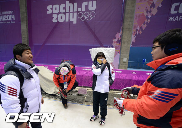2014소치 동계올림픽 개막을 앞둔 4일(한국시간) 러시아 소치 산키 슬라이딩센터에서 김동현 원윤종 김선옥 봅슬레이 파일럿들과 이용 감독이 트랙워킹을 하고 있다.