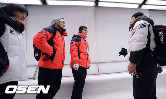 2014소치 동계올림픽 개막을 앞둔 4일(한국시간) 러시아 소치 산키 슬라이딩센터에서 김동현 원윤종 김선옥 봅슬레이 파일럿들과 이용 감독이 트랙워킹을 하고 있다.