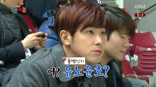 유노윤호는 지난 4일 방송된 KBS 2TV 예능프로그램 '우리동네 예체능'에서 최강창민을 응원하기 위해 관중석에 앉았다.