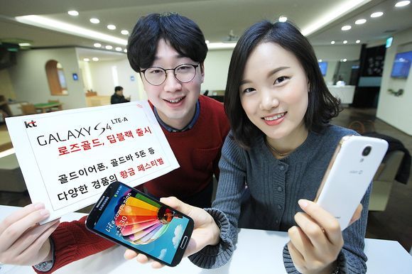 KT가 삼성전자 ‘갤럭시 S4 LTE-A 로즈골드’ 단말기를 6일에, ‘갤럭시 S4 LTE-A 딥블랙’을 2월 중으로 출시한다.