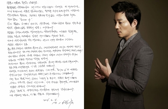 이범수는 5일 오전 자신의 마이크로 블로그 트위터를 통해 KBS 2TV 월화드라마 '총리와 나' 종영 소감이 담긴 자필편지를 게재했다.