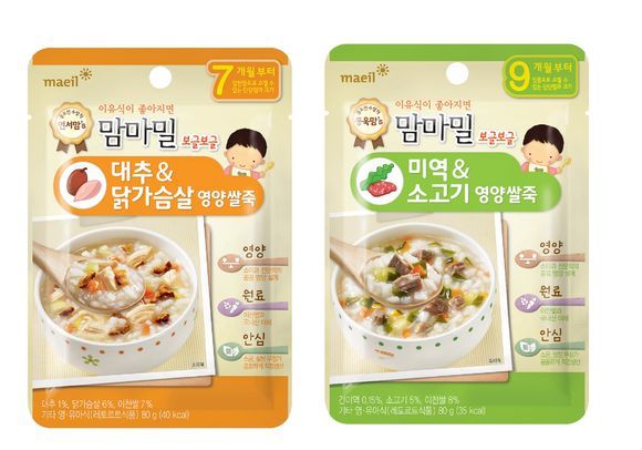 여름철 아이들에게도 보양식이 필요하다고 생각해 삼계탕에서 모티브를 얻어 만든 ‘대추&닭가슴살 영양쌀죽’과 빈혈과 혈소판 감소증, 변비로 고생하는 아이를 위해 철분과 칼륨, 식이섬유가 풍부한 재료를 찾아 만든 ‘미역&소고기영앙쌀죽’은 소아과 전문의의 꼼꼼 영양설계로 월령별 필요한 영양소를 고루 채웠으며, 이천쌀과 국내산 야채를 사용하여 안심하고 믿을 수 있는 제품이다.