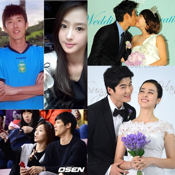축구선수 김정우와 연기자 한혜경이 결혼하는 가운데 스포츠 스타와 연예인 커플에 관심이 모아지고 있다.