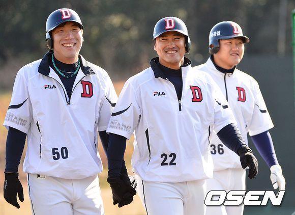 두산 베어스는 1월 15일부터 미국 애리조나에서 투수조 훈련을, 야수조는 17일부터 일본 미야자키에서 훈련을 시작했다. 2월 5일부터는 일본 미야자키 캠프에 투수조가 에 합류한다. 현재 미야자키 스프링캠프에는 코칭스태프 5명과 야수조 선수 18 총 23명의 선수단이 참여했다.