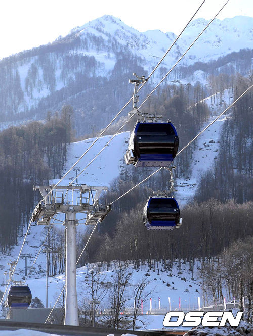 2014소치 동계올림픽 개막을 앞둔 5일(한국시간) 러시아 소치 산악 클라스터에 위치한 케이블카가 운행되고 있다.