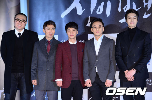 5일 오후 서울 코엑스 메가박스에서 열린 영화 '신이 보낸 사람'(김진무 감독)의 시사회에서 김진무 감독과 조덕제, 홍경인, 김인권, 지용석이 포토타임을 갖고 있다.